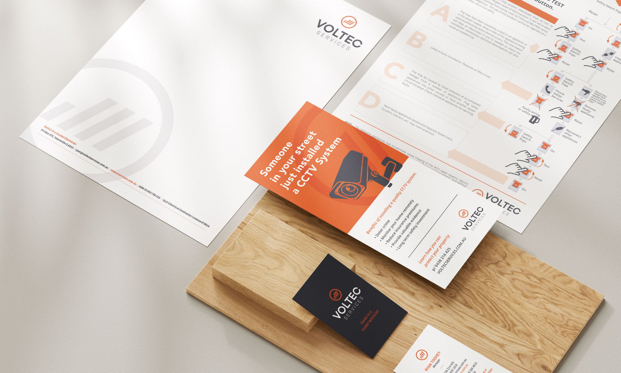 A visual identity system designed to project a professional and cohesive image that would work to communicate correctly to their varied audience and work, in residential, commercial and construction specialised electrical services.